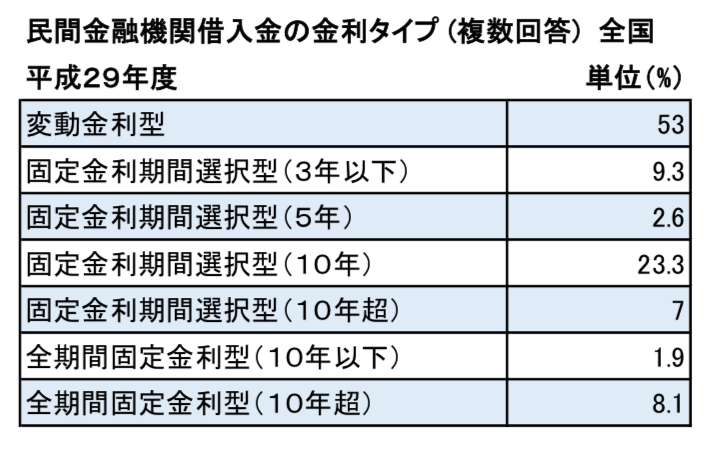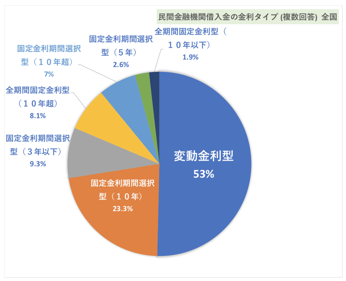 民間の金融機関に融資を申し込んだ方のうち、民間金融機関で選んだ金利タイプは下記の通りです。