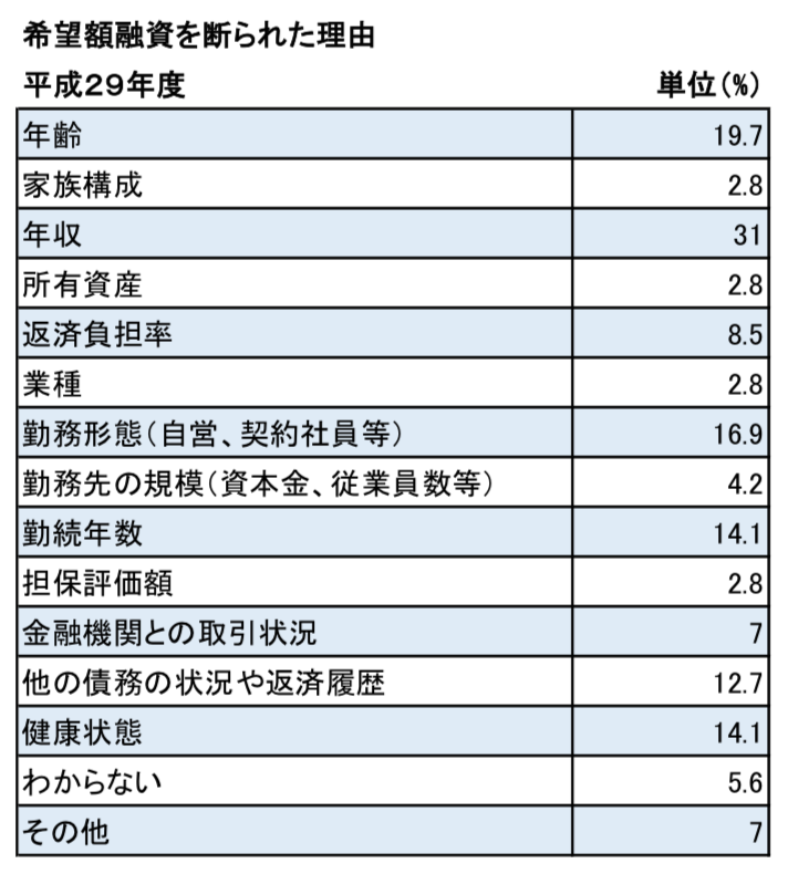 そのほか、収入の安定性が厳しく見られていることがわかります。