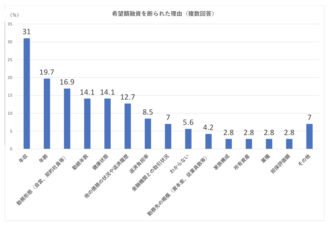 続いて、希望融資を断られた理由について見ていきます。