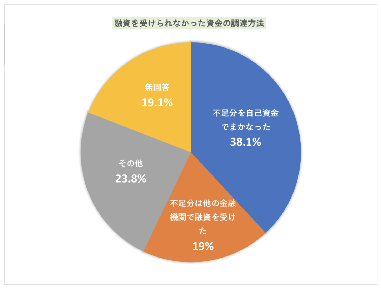 不足分を自己資金でまかなった方が最も多く全体の「38.1%」、他の金融機関で融資を受けた方が「19%」という結果になっています。