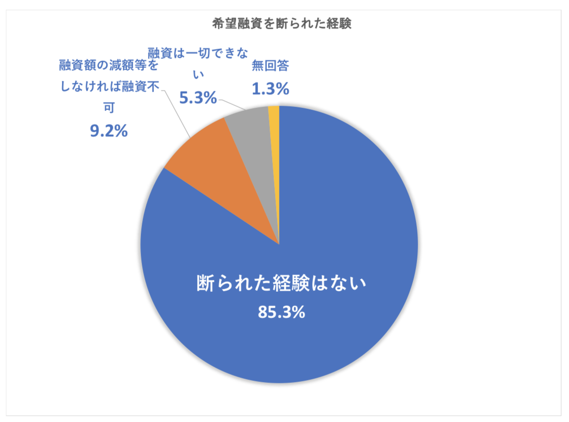 民間金融機関に融資を申し込んだ世帯のうち、希望融資を断られた経験があるかについては下記のような調査結果が出ています。