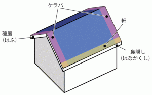 屋根は、特に「屋根」と「壁」が交差している際(きわ)の「軒天井(ケラバ)」に当たる部分が防水の弱点となります。