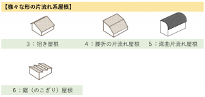 注文住宅で使われる屋根のうち、片流れ系の屋根をまとめると下記の通りとなります。