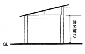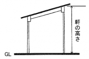 「小屋梁」までの距離が「軒高」となり、「軒高」までの柱の長さが短くなるので風で柱がたわみにくく、座屈しにくいメリットがあります。