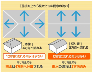 - 4.1 寄棟・方形屋根の特徴1:切妻屋根よりも雨仕舞いがよく雨の流れに優れている