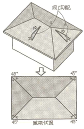 寄棟屋根は4方を同じ傾斜(勾配)で架けていくのが一般的