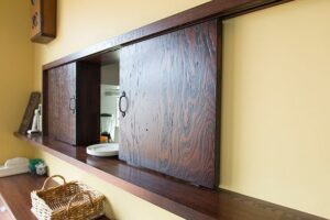 そのため何も考えずに対面式キッチンにすると雑然とした印象になってしまうデメリットがあり、この問題を解決するためにキッチン前の目隠しとして腰壁をつくったり、キッチンを隠してしまえるような扉をつけるなどといった隠すための工夫をする必要があります。
