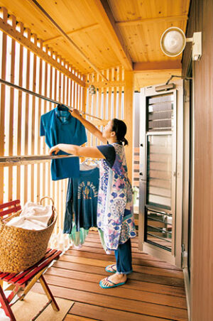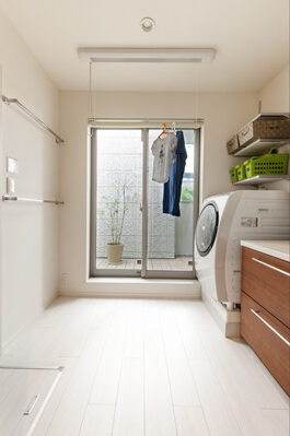 この時、庭へと続く出口を用意しておくと天気の良い日には外で干すこともできるようになるのでお勧めです(この辺りの設計は設計士の腕にかかっています)。