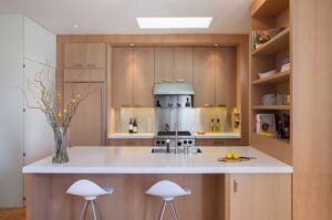 2:コンロ部分を壁に持ってきてガラスで覆う(ペニンシュラ型)