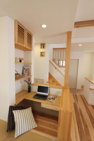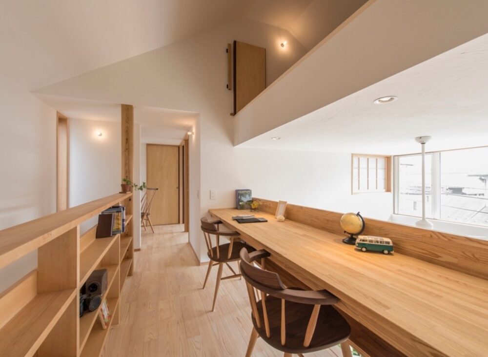例えば階段の踊り場を間借りして設置するのもいい例でしょうし、廊下の幅を1500mm程度に広げ、書斎をつくる方法も検討するといいでしょう。
