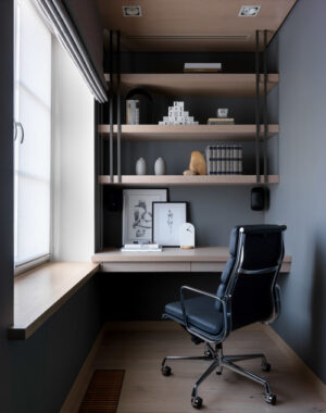 「書斎とは、そもそも書斎って何?」でも触れましたが、空間の一部を間借りし、1畳から2畳ほどのスペースにカウンターと椅子、書棚を設け、ちょっとした時間に椅子に座って書き物をしたり、パソコンで仕事をしたりと隙間時間を利用する使い方の書斎も増えてきています。