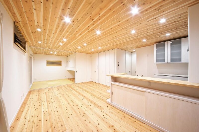 床のレベル(床の高さ)をLDKと揃えた上で和室を使い勝手が良く落ち着く空間にしたい場合は、床ではなく和室部分の天井高を下げる方法もあります。